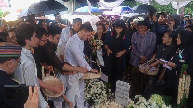 Dewi Yull, mantan istri Ray Sahetapy, juga terlihat ikut menghadiri pemakaman itu.